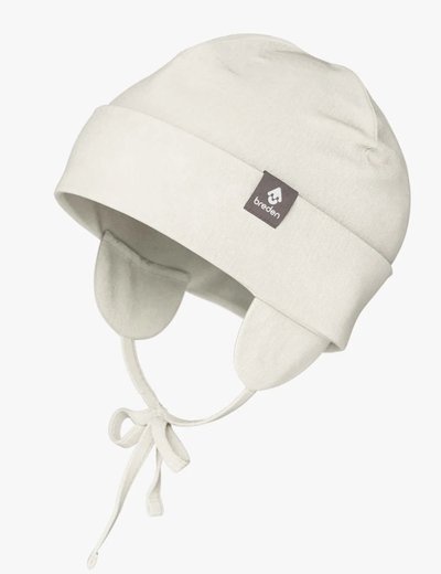 Baby hat HAPPY stays perfectly in place while keeping your baby's ears securely covered. Soft, yet strong strings ensure that the hat will not fly away even if your little one tries to remove it. Quadruple-layered brim adds extra wind protection.